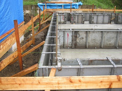 今日は、朝から基礎の型枠を設置する工事が行われました。