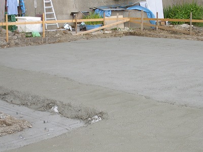 厚さは5cm程度が平均で、鉄筋は入っていません(捨てコンですから)