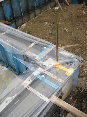 アンカーボルト・ホールダウン金物の設置は、立ち上がり生コン打ちの前に行ないます。