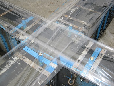 生コン流し込みの際バイブレータなどを使い、生コンを締め固めます。