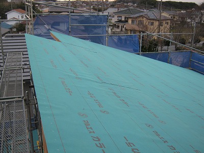 ●防水下地 ルーフィング施工 屋根材は、コロニアルを施工します。